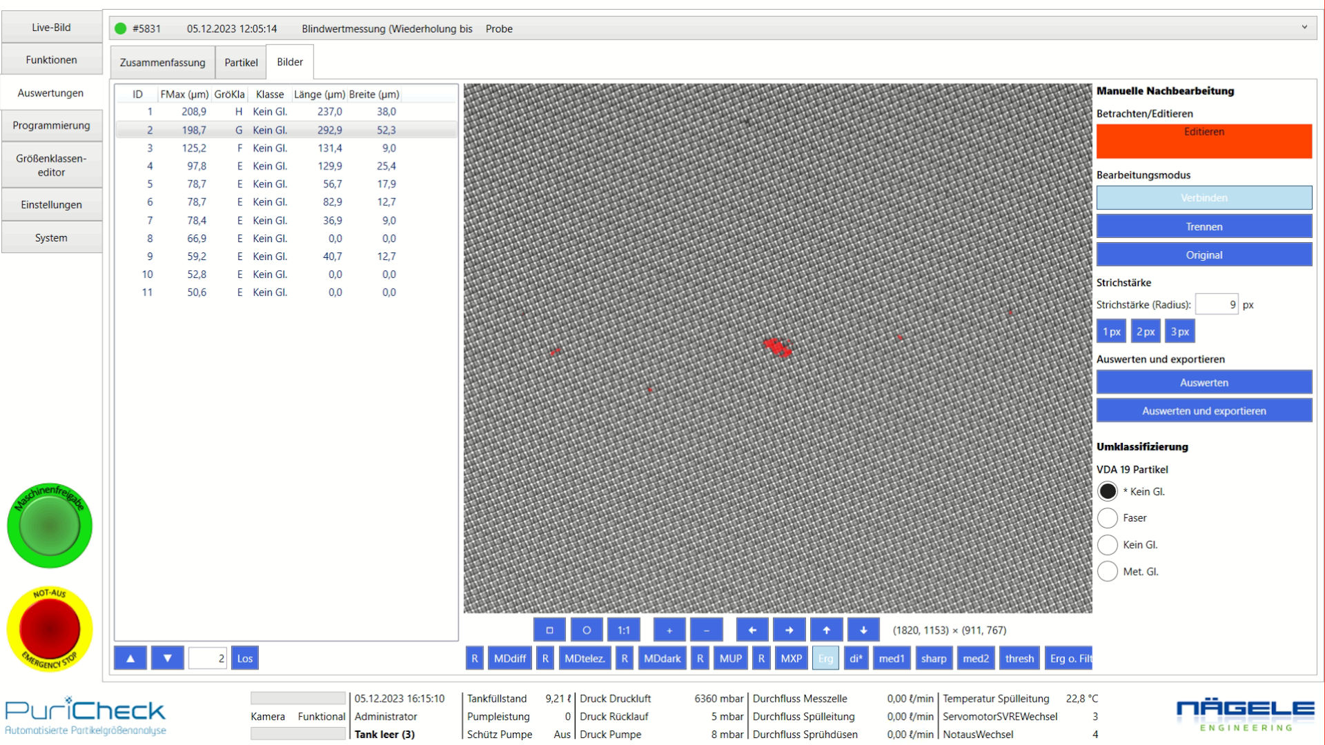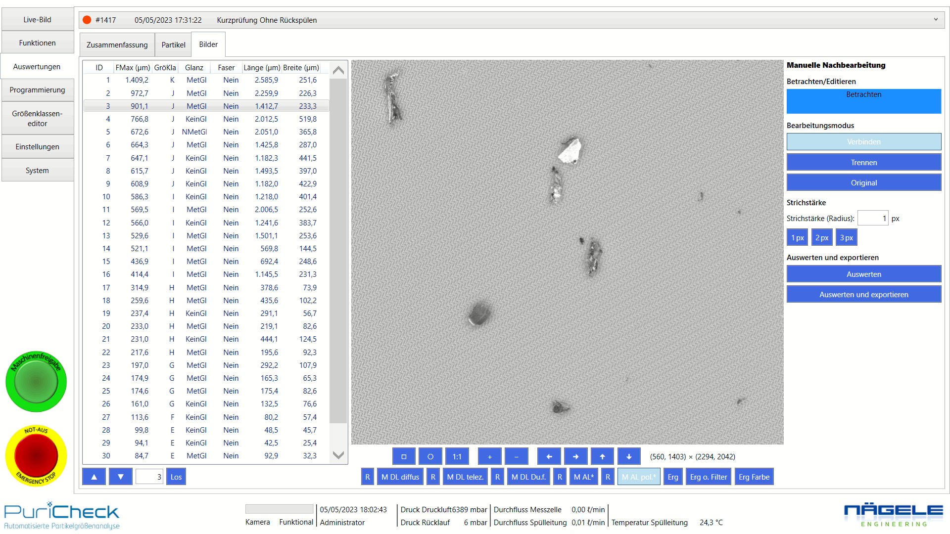 Auf allen unseren Anlagen zur Prüfung oder Bestimmung der Technischen Sauberkeit läuft die gleiche Software, welche vielfältige Konfigurationsoptionen bietet und dennoch intuitiv und nach kurzer Einlernzeit zu bedienen ist. Individuelle Einzelmessungen im Labor mit umfangreichen Eingriffsmöglichkeiten lassen sich ebenso realisieren wie die vollständige Automatisierung von Sauberkeitsprüfungen in bzw. an einer Fertigungslinie.